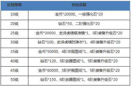 活动内容:活动期间,战队达到指定等级,即可获得等级对应的道具奖励!