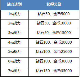 活动内容:活动期间,竞技场战斗力达到对应值将获得对应的奖励。